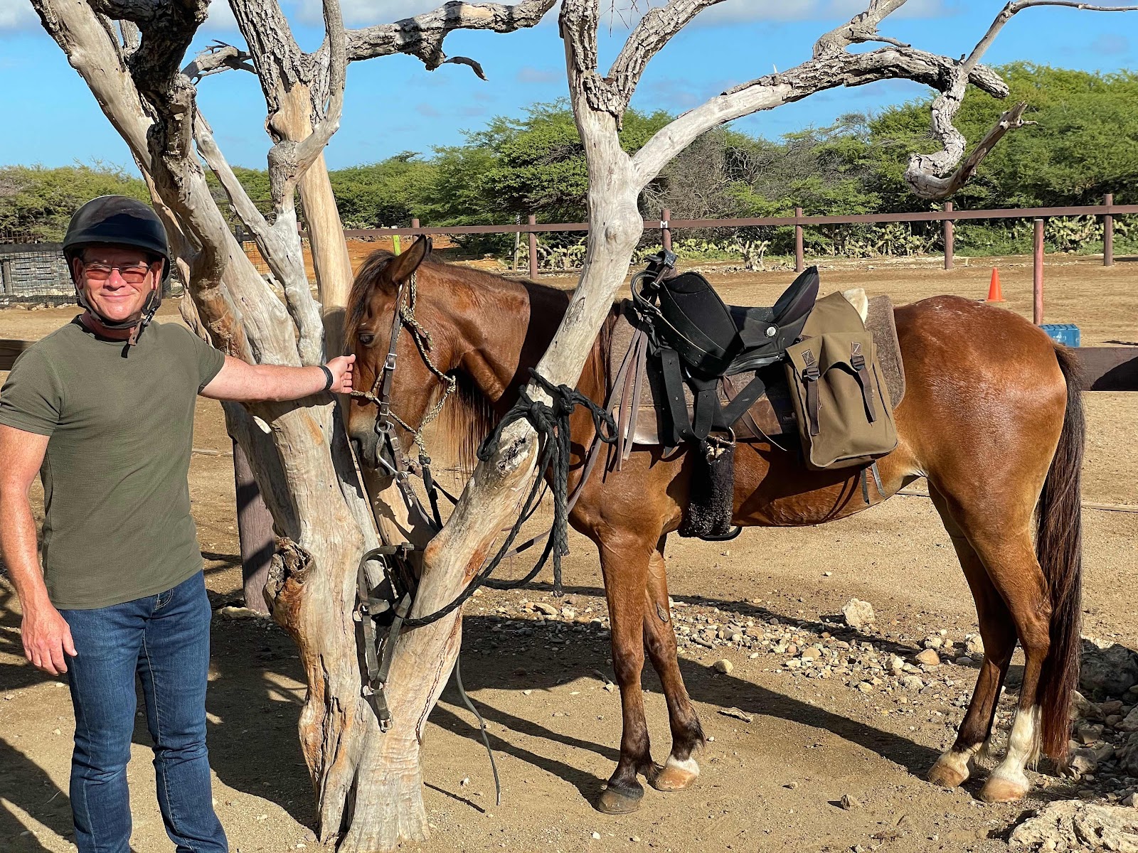 All that aside, Bonaire may well be the cutest of the ABCs, with pristine waters bristling with corals and fish. And cacti, donkeys, flamingoes, cacti, lizards and horses, oh and cacti. OK so the horses are on the ranch we’ve arrived at, Horse Riding Bonaire. Hubby gets Hero and I get Liberty, Libby now we’re friends.