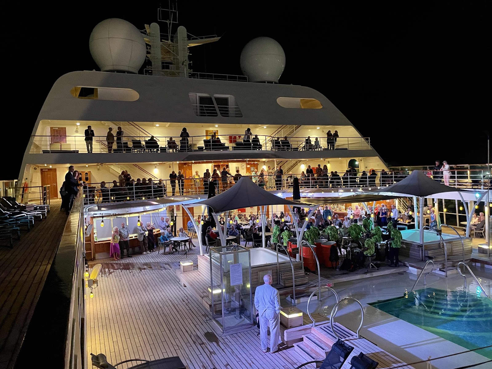 On deck tonight is the oldest / longest formed steel band in the world. Their energy and enthusiasm is incredible, the music is great and it’s quite a spectacle.